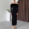 Women's Off-Shoulder Midi Dress with Plush Collar