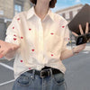 EYE-CATCHING HEART-SHAPE PRINT: The vibrant red heart-shaped print adds a playful and romantic flair to the shirt, making it stand out in any wardrobe.