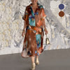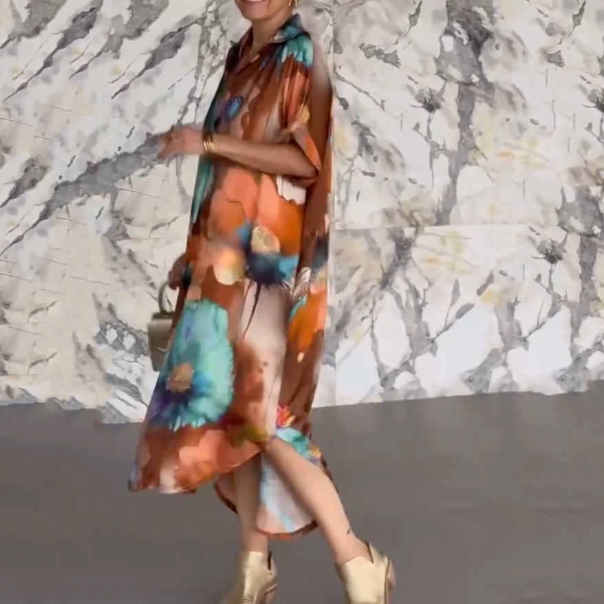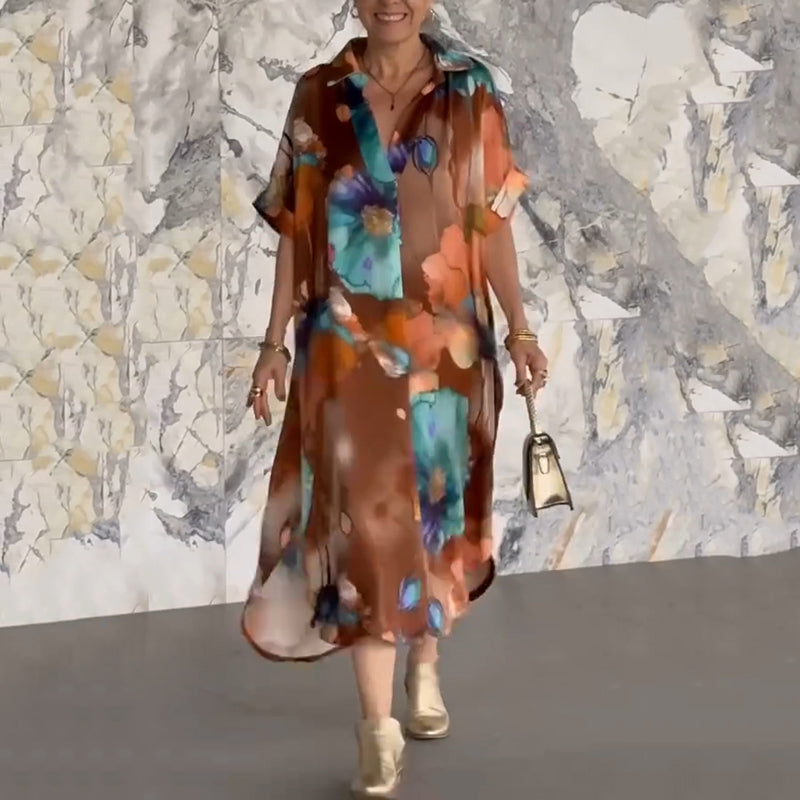 UNIQUE ARTISTIC FLORAL DESIGN: Adorned with vibrant, oversized floral patterns, this dress exudes an artistic charm. The bold color palette blends seamlessly, making it a standout piece for any occasion.