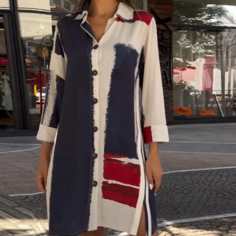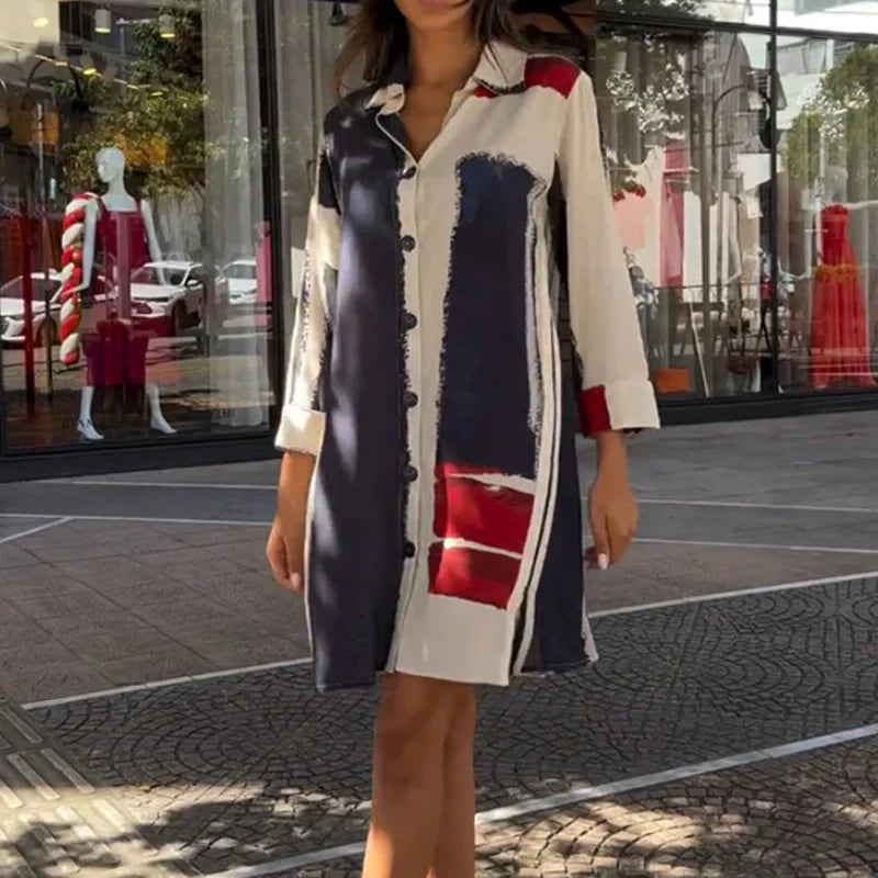 TRENDY COLOR BLOCK DESIGN - Our shirt dress features a fashionable color block pattern that adds a modern touch, making it a standout piece for casual outings or relaxed gatherings.